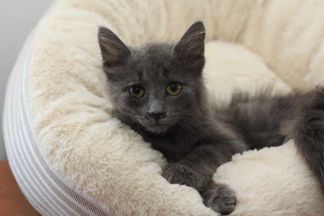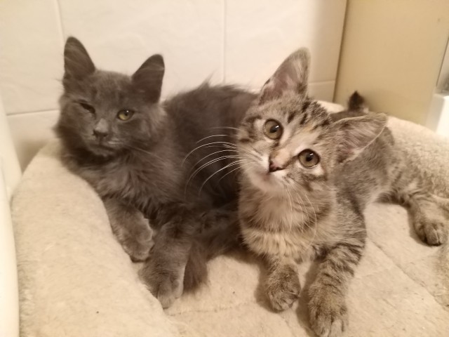 Benjamin je bi najden v Kozjem, pred cca. 14imi dnevi. Čez en teden naj bi dopolnil 3 mesece. Je nežen, še nezaupljiv mucek in mu ni do poziranja. Najraje se umakne pod omarico, od koder opazuje dogajanje in nove osebke. Za papat je pa priden. :kiss: Družbo mu sedaj dela zelo živahna mala petardica Dori.